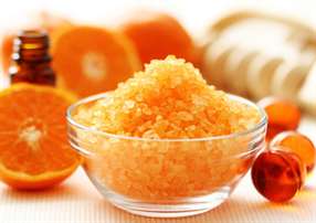 С маслом апельсина возможно приготовить неплохой скраб для кожи. 100 гр молотого кофе + ложка оливкового и апельсинового масла. Кофе заливается кипятком и настаивается около 15 минут. В образовавшуюся кашицу добавляются эфирные масла, перемешивается. Такое средство желательно применять через день. Смывается с помощью контрастного душа.