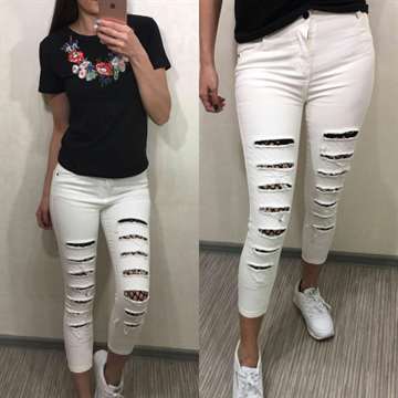 - Узкие брюки. Несмотря на то, что в последнее время акцент смещается на расклешенные модели, узкие брюки никогда не выйдут из моды. Они подчеркивают все достоинства фигуры и, выполненные в белом цвете, придают образу особую изысканность и привлекательность.