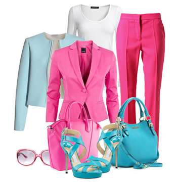 - Бирюзовые шорты, пиджаки и юбки прекрасно дополняют розовые босоножки, а если добавить к ним бирюзовую блузку, такой образ будет выглядеть очень привлекательно.
