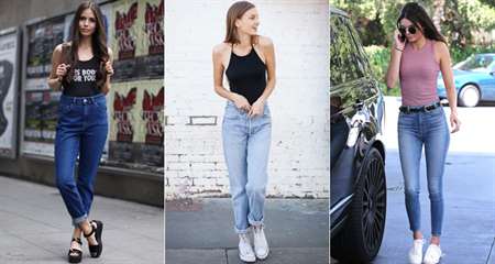 Именно такие джинсы носили в Америке в 90-х годах, и были на пике популярности. Их носили все, считалось, что это самая стильная часть гардероба. Высокая посадка одна из самых удачных, она визуально вытягивает силуэт, делает ноги более длинными и стройными. Американки с высокой талией, бесспорно, подойдут для девушек с фигурой типа песочные часы и треугольник. Обладательницам других форм стоит внимательно подбирать напарника таким джинсам, чтобы уравновесить верх и низ.