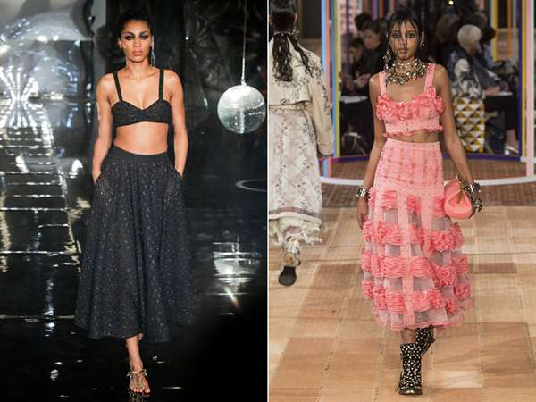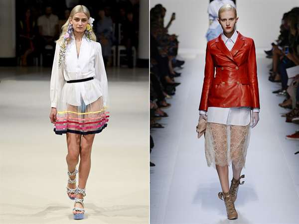 С чем сочетать: Дизайнеры Ermanno Scervino и Alexis Mabille рекомендуют комбинировать юбку с длинной рубашкой, в то время как Christian Dior представил своих моделей в смелых боди.