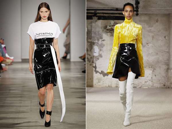 Ни одно модное мероприятие не обходится без кожаных юбок – они всегда выглядят невероятно стильно. В этом сезоне дизайнеры решили поэкспериментировать не только с силуэтами, но и с текстурами и фактурами. Черные глянцевые юбки выглядят особенно ярко и оригинально. Кроме того, в этом году вы можете смело играть с цветами кожаных юбок: на рынке появились модели с градиентным переходом оттенков.