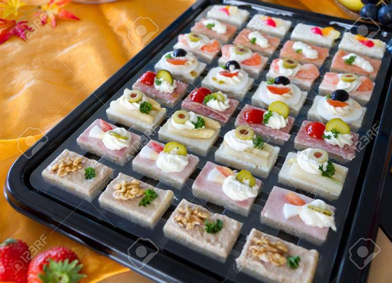 Легкие закуски | Канапе с сыром и фруктами, мини-сэндвичи, тарталетки с икрой, овощные палочки с дипом | Порционные, удобные для еды одной рукой, не крошащиеся, не пачкающие одежду |