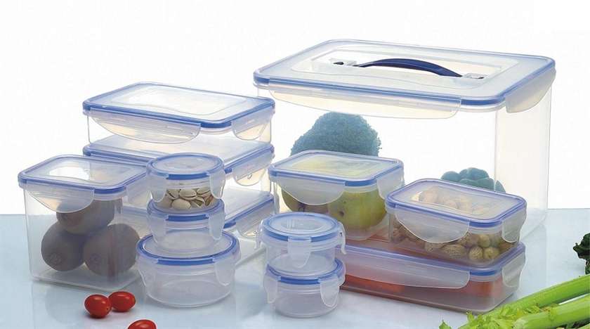 - Для сохранности продуктов используют пластиковые контейнеры. Они обязательно закрываются герметичной крышкой, предотвращая попадание воздуха и пыли. Это позволит сохранить качество еды и избавит от хлопот, связанных с мусором. В такой емкости еда не вываливается, сохраняя свою форму.