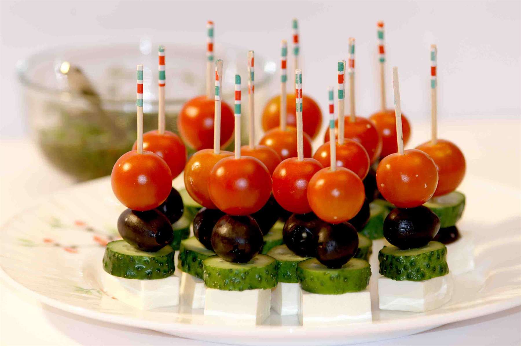 В качестве легких закусок прекрасно подойдут канапе. Это небольшие по размеру закуски, которые состоят из нескольких ингредиентов, соединенных между собой шпажкой или зубочисткой. Можно нарезать продукты кубиком, а некоторые применяют специальные шаблоны, по которым вырезают фигурные детали, например в виде сердца. Можно приготовить небольшие рулеты, которые так же скрепляют шпажками. Все эти кулинарные произведения искусства укладывают в пластиковые контейнеры, которые обязательно должны закрываться крышкой. Их удобно брать в руку, не запачкав пальцы, они сытные, оригинальные и небольшие по размеру. Идеальный вариант для закуски.