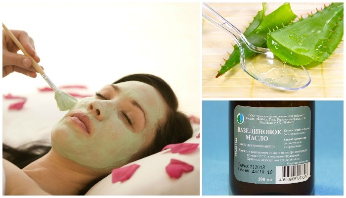 Этот вариант омолаживающей маски один из самых эффективных. Вазелиновое масло образует пленку, которая способствует более полному усвоению полезных веществ, содержащихся в соке алоэ.