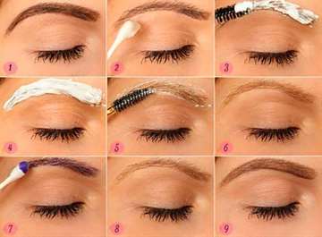 Этот метод требует минимальных затрат времени, но его эффект недолговечен. Тем не менее, он позволяет точно подобрать оттенок и определить, подходит ли вам светлый цвет бровей.