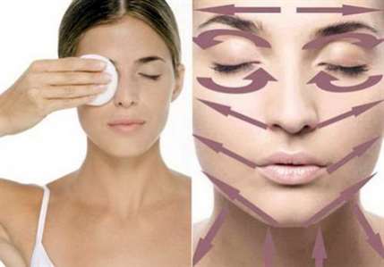 Очищение кожи следует проводить легкими движениями пальцев по массажным линиям, начиная от центра лица и двигаясь к его краям. Массажные линии играют важную роль как при снятии, так и при нанесении макияжа. Линии проходят от центра лба к вискам, от центральной части подбородка в стороны и вверх, а также от переносицы вверх и плавно в стороны.