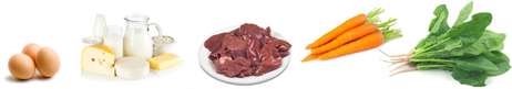 В вашем рационе обязательно должны быть яйца, печень и молочные продукты. Из растительных источников рекомендуется включать морковь, шпинат, абрикосы, а также овощи и фрукты желтого и красного оттенков.