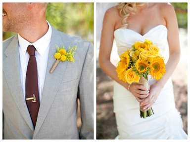 Цветовая палитра бутоньерки должна органично сочетаться с костюмом жениха.