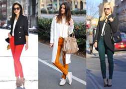 Яркие модели джинсов стоит дополнять обувью в сдержанных тонах. Например, с красными брюками отлично гармонируют туфли серого, коричневого, черного или бежевого оттенков.