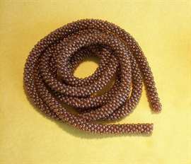 - Таким образом вяжется весь жгут. Если все сделано верно, бисер ложится вертикально (отверстия направлены вверх). Лишь последнее кольцо является исключением.