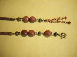 В качестве декоративных элементов применяются бусины, обломки камней, колпачки и кольца. Эта фурнитура помогает разнообразить готовый лариат, а также создавать уникальные дополнения для плетеного жгута, такие как различные подвески и кисти необычных форм. В результате получается поистине уникальное украшение.