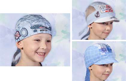 - Бандана. Прекрасный выбор головного убора для мальчиков. Ее можно легко сделать самостоятельно из кусочка легкой ткани.