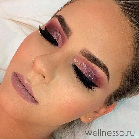 Для вечернего макияжа отличным решением станут блестки, которые наносятся на верхнее веко плотным слоем. Посмотрев на фотографии, можно оценить всю красоту такого варианта.