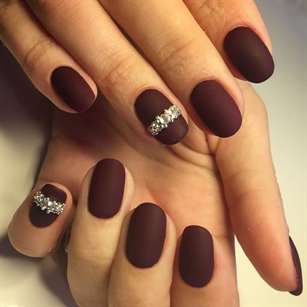 Дизайн бордового маникюра со стразами отличается разнообразием и уникальностью. Идеальная форма ногтей, гладкая поверхность и блеск камней – что может быть лучше для создания образа настоящей леди?