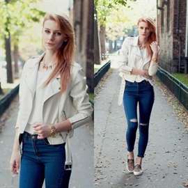 - Что касается брюк, то тут прекрасно подойдут зауженные джинсы джинсы- бойфренды и лосины. Если же девушка идет на деловую встречу, то лучше всего остановить свой выбор на зауженных черных или белых брюках. Но такую одежду лучше всего надевать худеньким девушкам.