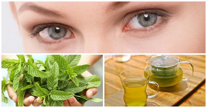 - маска из зеленого чая (листового) и листочков мяты готовится из запаренных трав, залить смесь трав небольшим количеством кипятка дать постоять. Жидкость слить (ее не стоит выливать, она сгодится для приготовления льда), а запаренную траву в теплом виде выкладывать на кожу век