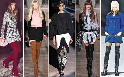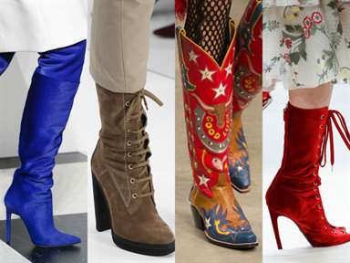Что касается отделки и материалов, то дизайнеры представили множество интересных комбинаций. Например, ботфорты из текстиля, дополненные меховыми элементами, а также изделия из замши с металлическими акцентами.
