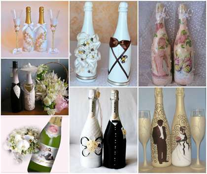 Украшение бутылок шампанского можно выполнить в едином стиле с фужерами. Также можно использовать различные техники, материалы и элементы для создания уникального дизайна.