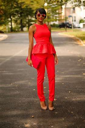 Для офисного стиля можно выбрать костюм с юбкой и пиджаком или брюки с блузой, дополненной баской. Рекомендуется, чтобы эти вещи были ярких и насыщенных оттенков, таких как вишневый или изумрудный. Бежевые лодочки в нейтральном тоне помогут сбалансировать яркость костюма (обратите внимание на фото ниже).