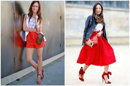 Если вы хотите привлечь внимание, вам понадобятся всего три элемента – черные босоножки, красная юбка и укороченный топ.