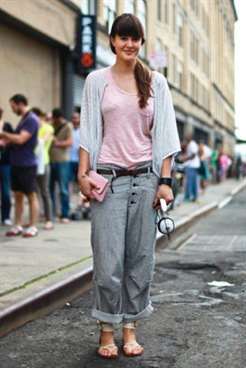 - Брюки из хлопка или льна. Этот вариант можно использовать для повседневного наряда или для вечерней прогулки. Низ брюк можно подвернуть, акцентируя внимание на обуви.