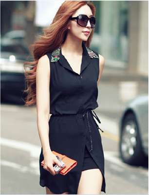 - Летом длинную блузку без рукавов хорошо сочетать с шортами или мини-юбкой того же оттенка. Если же низ выбрать контрастного цвета, то переднюю часть блузы можно заправить, это придаст привлекательную небрежность образу.