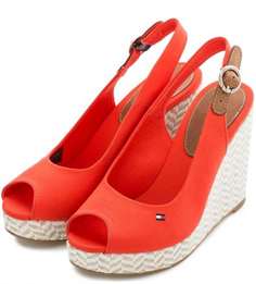 Спортивный шик | Красные босоножки на танкетке + брюки-кюлоты + топ | Необычное, но стильное сочетание для активных девушек. Добавьте рюкзак или поясную сумку. |