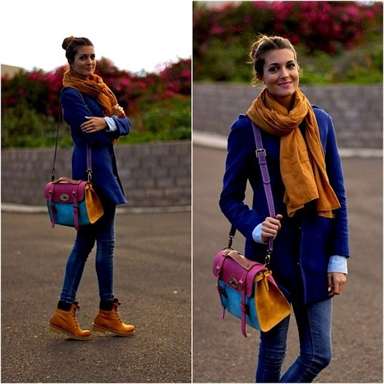 - Тимберленды и леггинсы. Если вы хотите выглядеть женственно и в то же время желаете одеть удобные и комфортные, на первый взгляд грубоватые ботинки – вам на помощь придут леггинсы. Если обычные брюки заменить леггинсами, то образ будет намного женственней. Добавив к ним яркий и нарядный топ, вы будете выглядеть просто очаровательно. Идеально к ним подойдет и многослойный ансамбль верха, визуально сбалансированный простым и лаконичным низом.