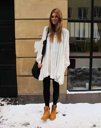 - Великолепно будут смотреться тимберленды с платьем и стилем сафари.
