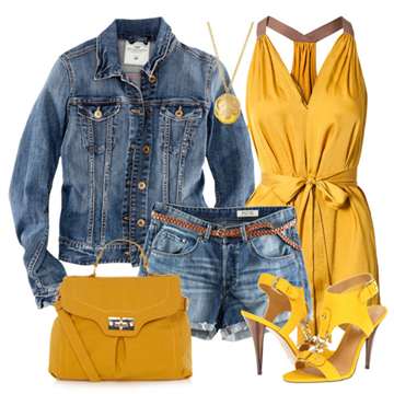 Если в вашей одежде всё же будет жёлтый, хотя это и не желательно, сочетайте обувь с верхом. Жёлтая блуза – белая юбка – жёлтые босоножки, жёлтый топ – белые джинсы – жёлтые босоножки.