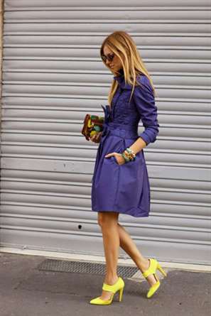Жёлтым босоножкам – жёлтый пиджак. Если вы опасаетесь переборщить с контрастными цветами, то выберете верх в цвет обуви (майку, блузку или пиджак), или носите платья контрастного цвета. Не хотите, но при этом считаете, что из жёлтого одних только босоножек мало? Запаситесь аксессуарами в цвет – сумкой, палантином или поясом.