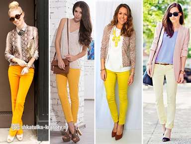 Кроме того, при выборе стильных желтых брюк или джинсов важно учитывать особенности своей фигуры.