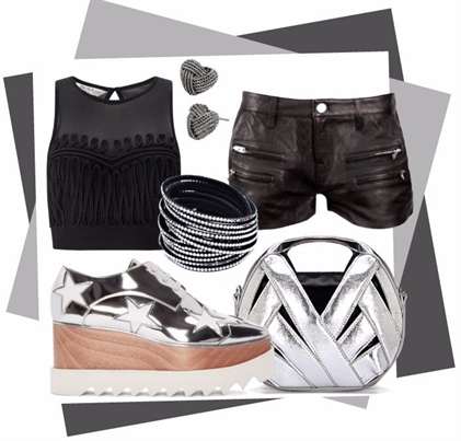 - Для молодежной вечеринки прекрасно подойдут модели кислотных либо металлических оттенков. Они особенно хорошо сочетаются с кожаными или джинсовыми шортиками, а подбор нестандартных, возможно даже вычурных аксессуаров, сделает образ неповторимым и впечатляющим.