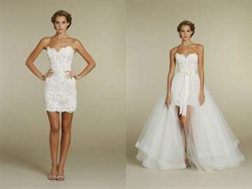 Ультрамодными сегодня являются короткие варианты трансформирующихся свадебных нарядов, когда уже изначально платье имеет небольшую длину. Чаще всего это модели со шлейфом. Убирая шлейф, девушка может не переживать, что, танцуя на банкете, она его запачкает, или кто-то на него наступит. На регистрации и торжественной части невеста предстаёт в платье с «хвостом», а для танцев, конкурсов и прочего он снимается.