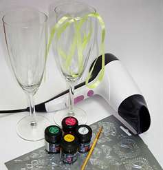 Акриловые краски | Роспись бокалов специальными красками по стеклу, создание рисунков, надписей. | Акриловые краски по стеклу, тонкие кисти, трафареты (по желанию), фиксатор для краски. |
