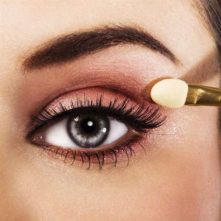 - Зону под бровями покройте прозрачными бежевыми тенями.