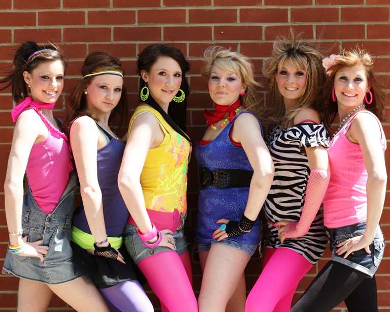 - Подружки невесты. Остальные вокалистки могут надеть облегающие лосины (причем цвет ткани может быть абсолютно любым), клетчатые рубашки (обязательно завязанные на груди в виде топа), короткие футболки и майки, яркая обувь и много бижутерии.