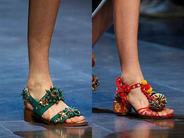 Насыщенные цвета, которые только существуют в живой природе, могут красоваться на летней обуви в этом году. Играющее оттенками синь моря, солнечное сияние, цветущие долины, утопающие в буйной зелени – всё это может вдохновить на создание модного шедевра.